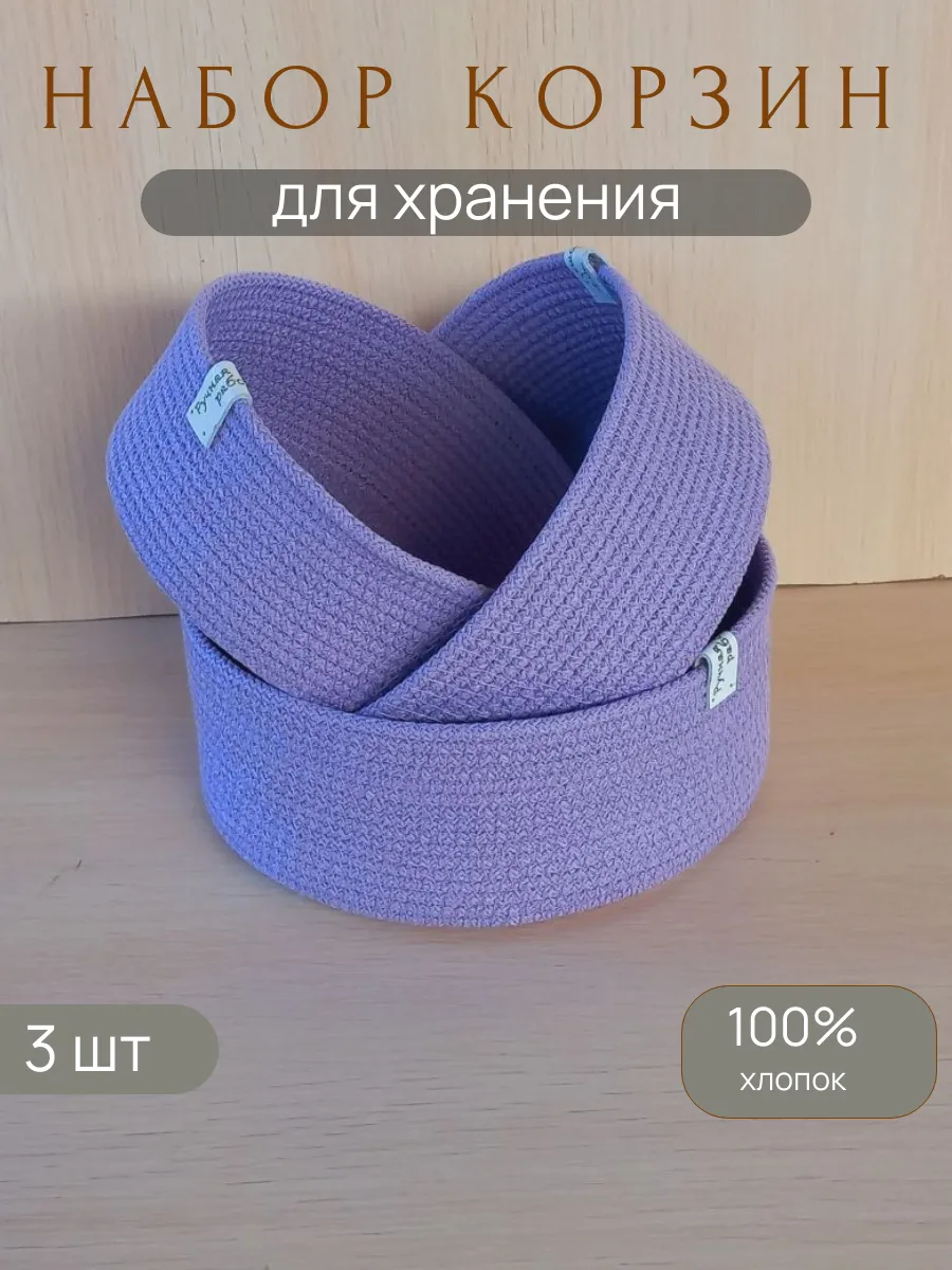 Представляем вам идеальный набор из трех стильных и функциональных корзинок из натурального хлопка - идеальное решение для организации хранения различных предметов в вашем доме!