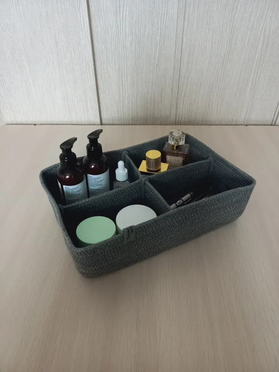 Плетеный органайзер станет идеальным решением для организации пространства в доме. Ее универсальный дизайн позволяет использовать изделие для хранения косметики, мелочей, полотенец, игрушек и других вещей как в ванной комнате, так и на кухне или в спальне. Благодаря натуральному материалу корзина устойчива к влаге, что делает ее практичным выбором для влажных помещений. Эта корзина отличается мягкой текстурой плетения и эластичностью, что обеспечивает удобство использования. Если изделие утратит форму при транспортировке, достаточно слегка расправить его руками материал – быстро восстановит упругость. Небольшая кожаная бирка придает изделию стильный акцент. Уход за корзиной не требует особых усилий: ее можно легко очистить с помощью пылесоса или влажной губки. Компактные размеры позволяют разместить корзину на полках или столешницах без ущерба свободному пространству. Мягкие края безопасны для поверхностей и не оставляют царапин. Этот органайзер станет функциональным дополнением интерьера любой комнаты, поддерживая порядок и добавляя уютное декоративное оформление. Используйте его для хранения косметических средств в ванной комнате, организации пространства на кухне . Идеальное решение для организации пространства - плетеная корзинка для хранения! Она станет любой корзинкой для мелочей. Органайзер для хранения идеально подойдет для использования в ванной комнате, где вы сможете хранить косметику и другие мелочи в удобном и компактном органайзере. Эту корзинку для мелочей удобно поставить в ванную для хранения косметики, полотенец. В нее поместятся все необходимые мелочи, такие как ключи, монеты и другие предметы, которые обычно теряются.