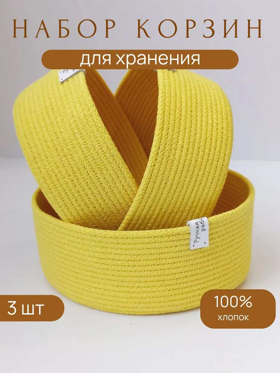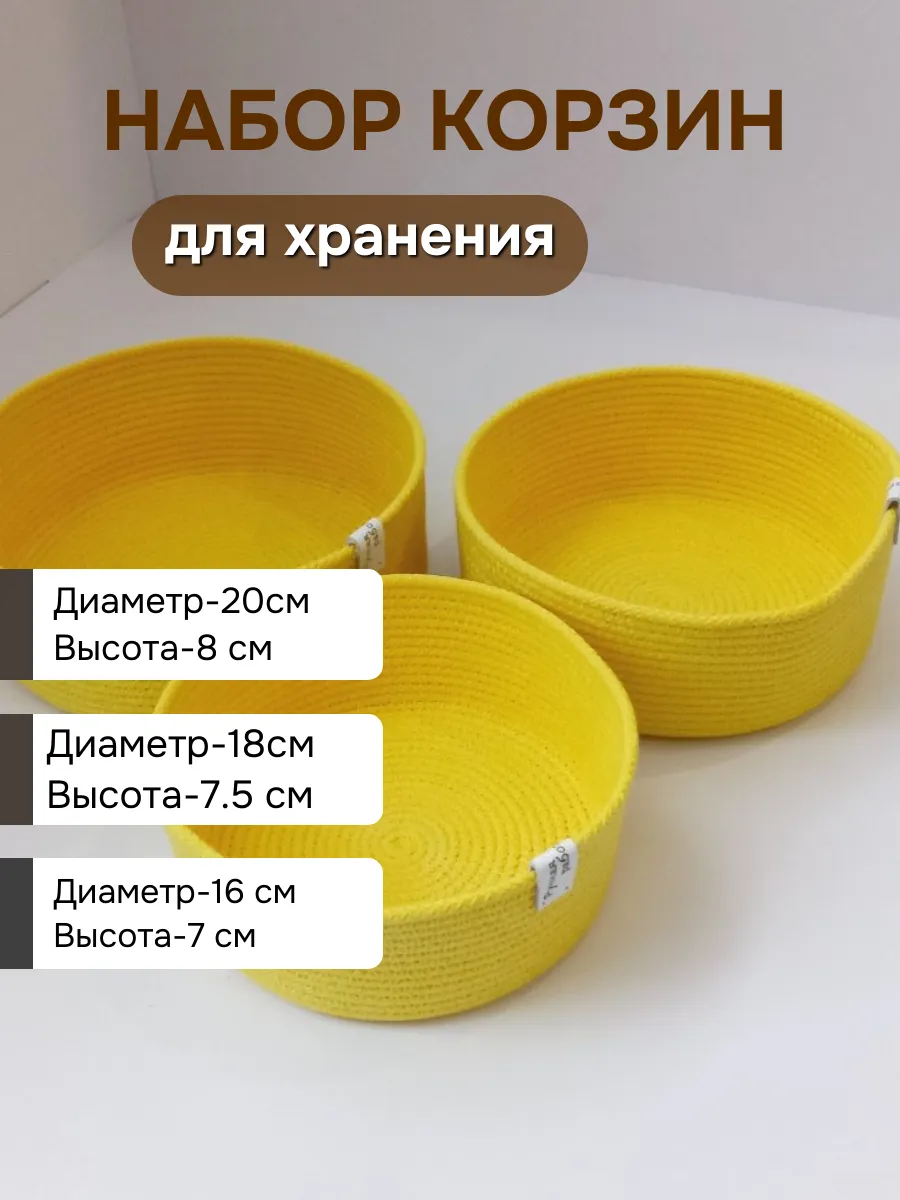 Представляем вам идеальный набор из трех стильных и функциональных корзинок из натурального хлопка - идеальное решение для организации хранения различных предметов в вашем доме!