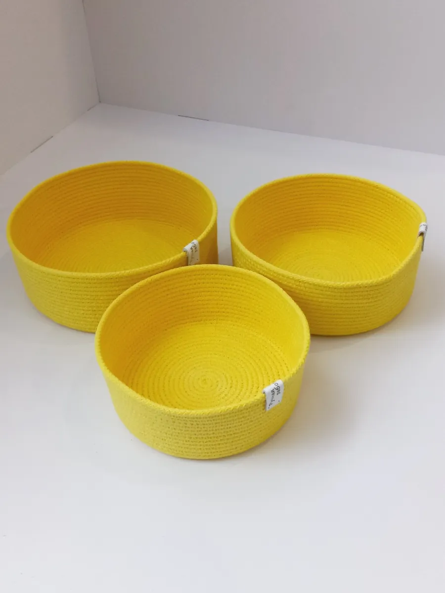В набор входит три разные корзинок разного размера, что позволяет организовать хранение вещей разного объема и размера. В комплект входит 1 корзинка размером 20*20 см, вторая - размером 18*18 см и третья размером 16*16 см. Например, вы можете использовать большую емкость для хранения фруктов, среднюю - для аксессуаров или косметики, а маленькую декоративную корзинку - для мелочей, которые всегда должны быть под рукой.