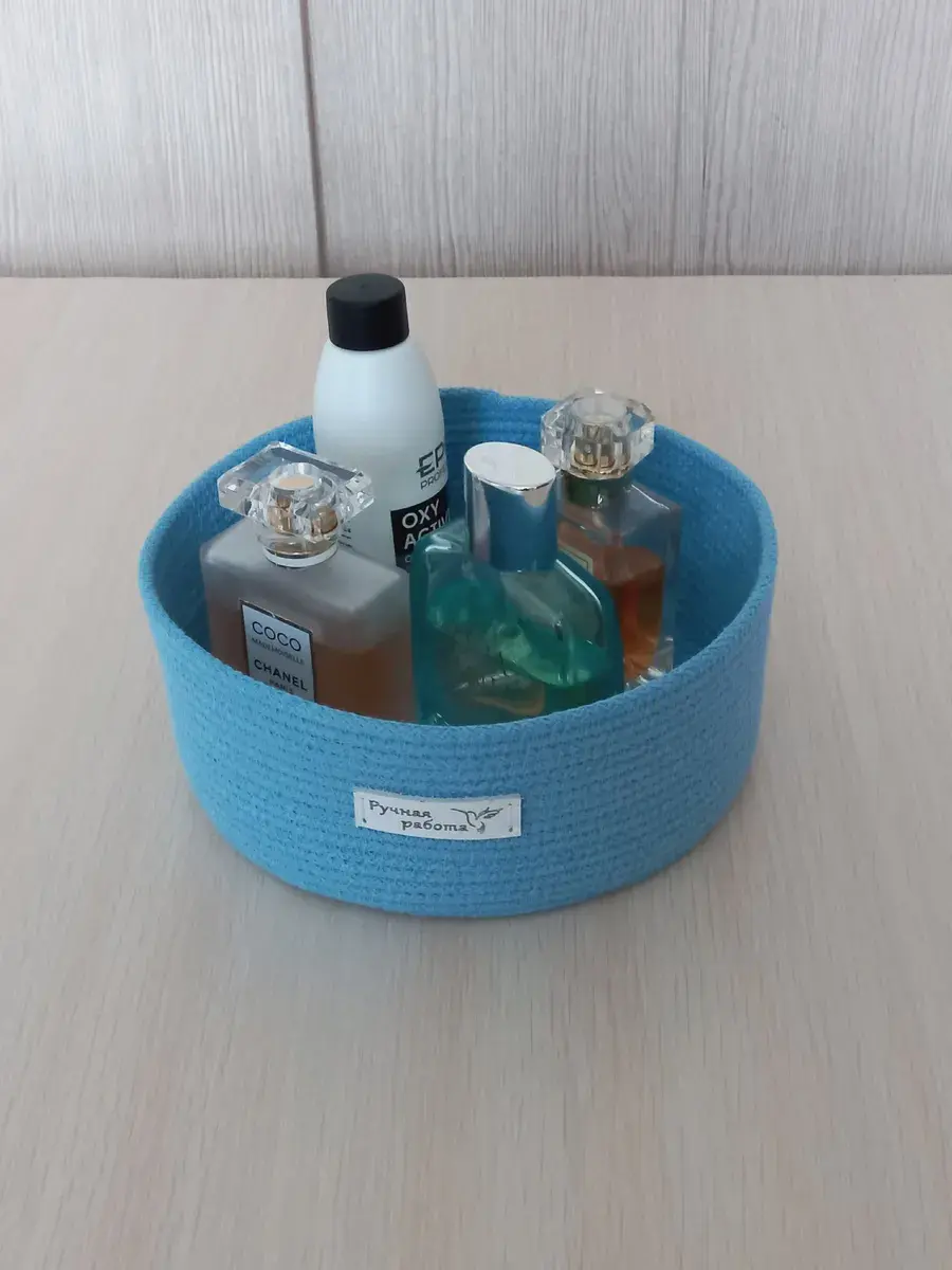 Универсальная плетеная корзинка для хранения.Выполнена из 100% хлопкового шнура высокой жёсткости .Корзину можно использовать практически во всем доме. Корзина исключительно ручной работы.С нашим плетеным органайзером для хранения вы создаете гармонию тепла и уюта в доме и на Вашей кухне.Корзинка выполнена в технике зигзаг, что является прочной основой.Вы можете использовать ее для косметики и спальной, как органайзер предметов ухода, на кухне под кухонный инвентарь , сервировки праздничного стола, в ней можно подавать хлеб на праздничный стол, использовать для фруктов, разместить ваши любимые специи, используйте в прихожей под разнообразные мелочи и ключи, в спальне для хранения ваших украшений, для украшения кашпо с комнатными растениями, а также как предмет декора для дома. При уходе за изделием не рекомендуем стирать корзину в стиральной машине, только сухая чистка.Большой выбор цветов позволит подобрать идеальное решение, под цвет мебели и кухонный декор.Корзина будет желанным подарком для ваших близких, можете порадовать друзей на новоселье, маму и бабушку в день рождения и международный женский день.