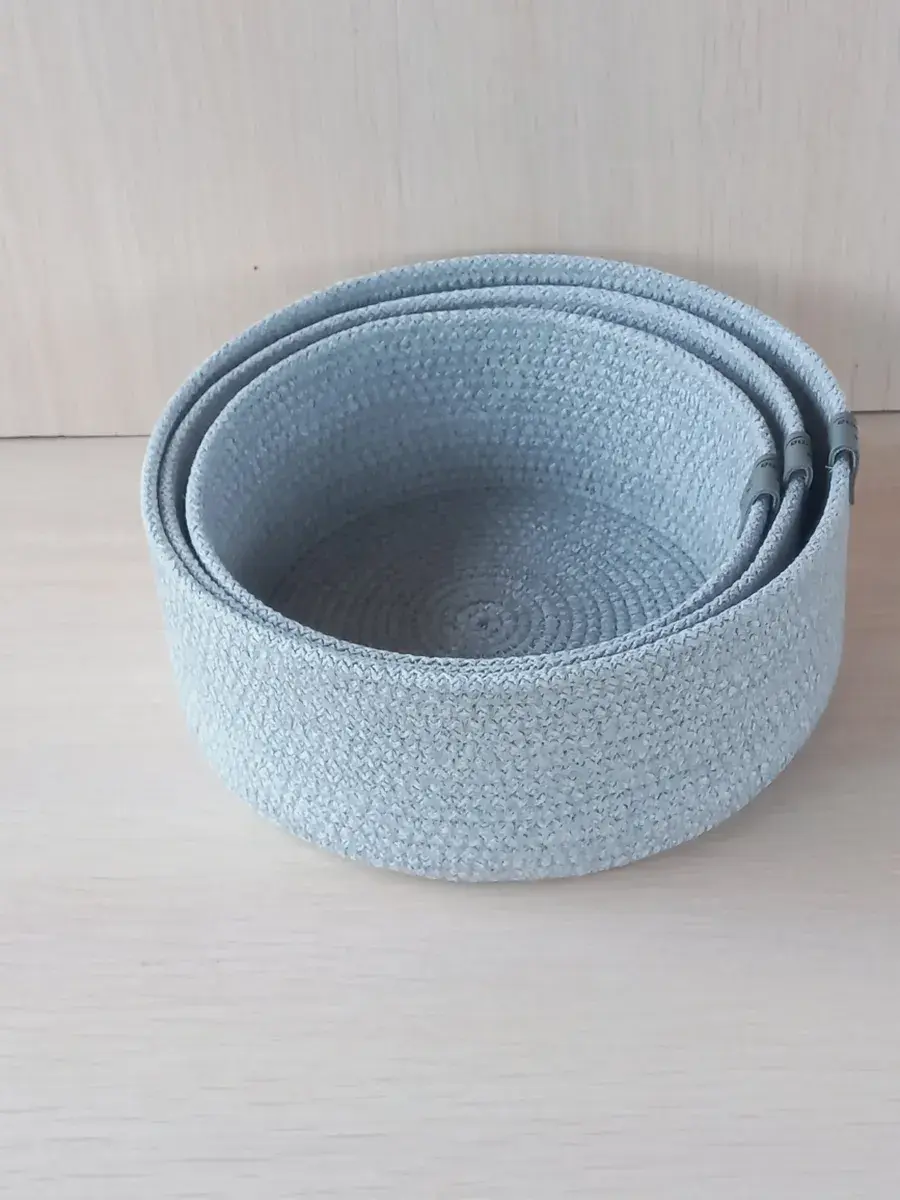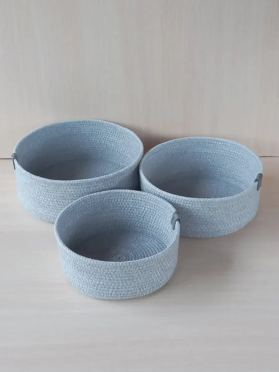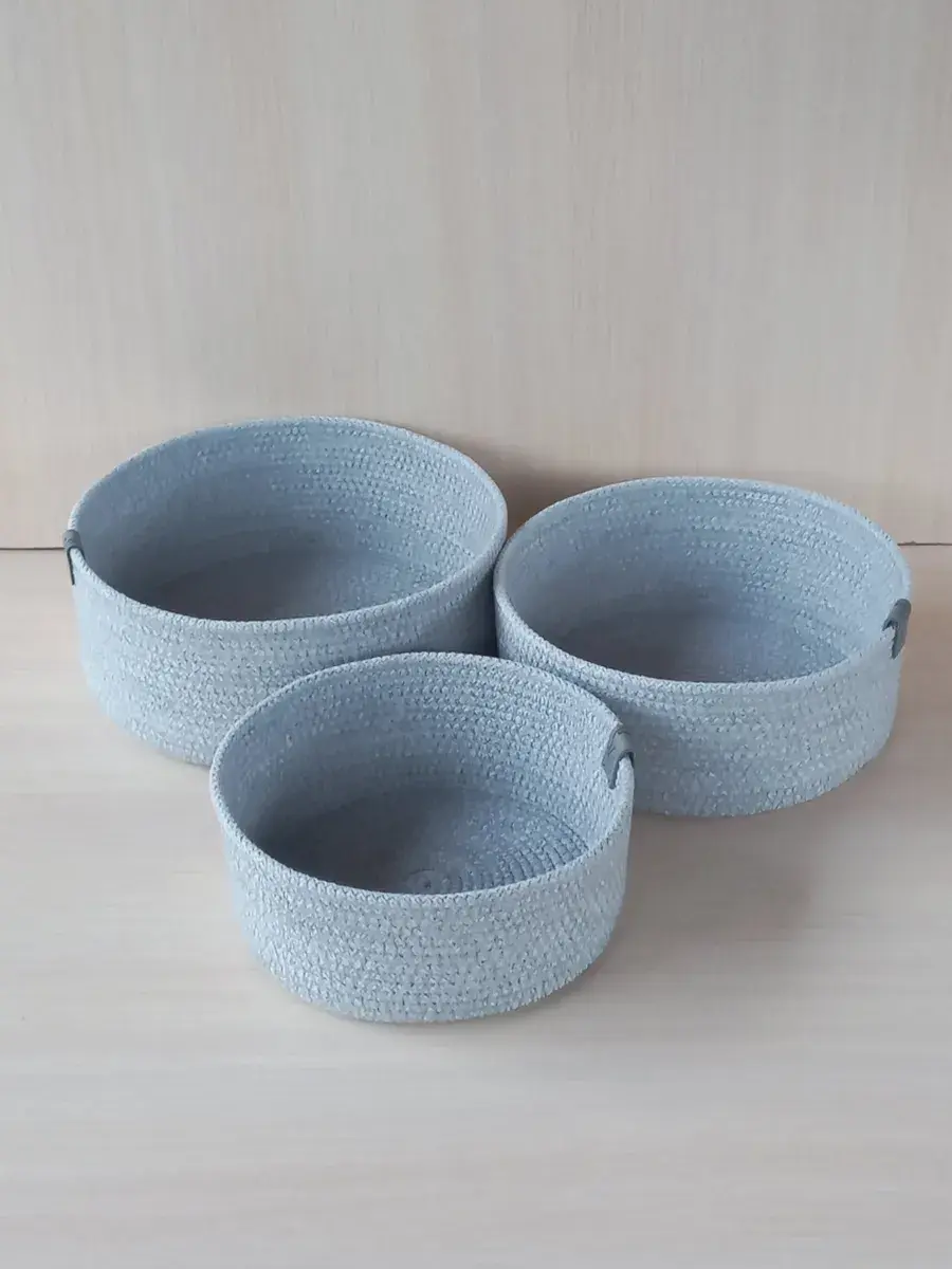 Представляем вам набор из трех стильных и функциональных корзинок из натурального хлопка - идеальное решение для организации хранения различных предметов в вашем доме!
