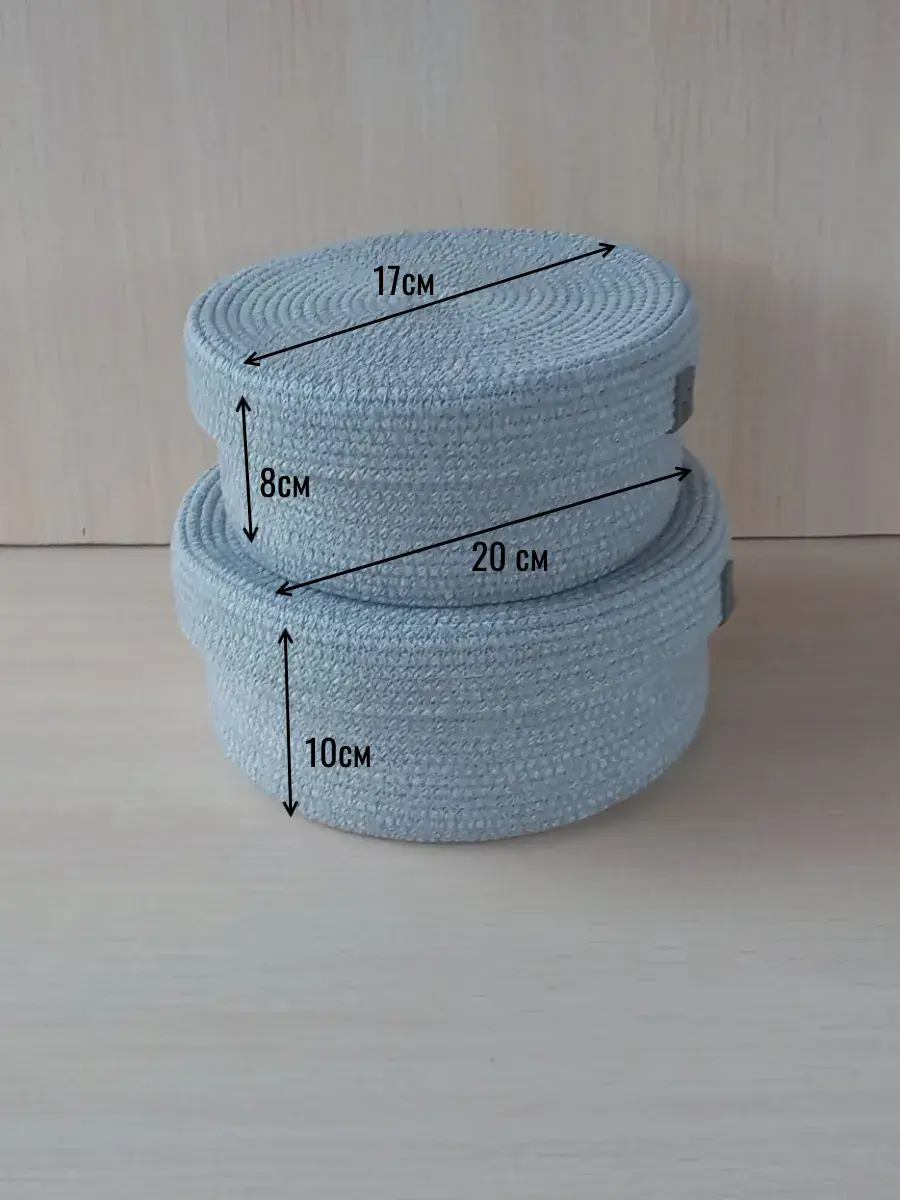 Представляем вам идеальный набор из двух стильных и функциональных корзинок из натурального хлопка - идеальное решение для организации хранения различных предметов в вашем доме!
