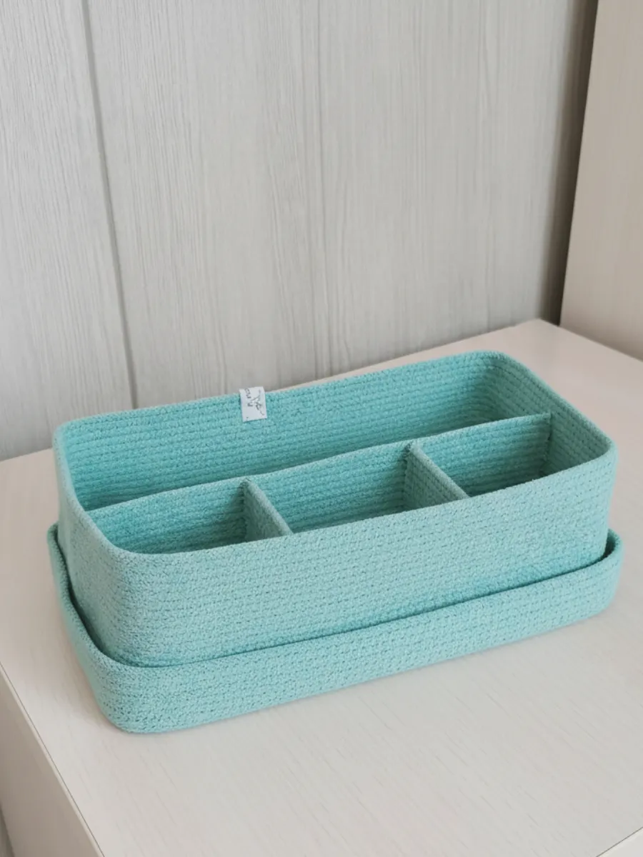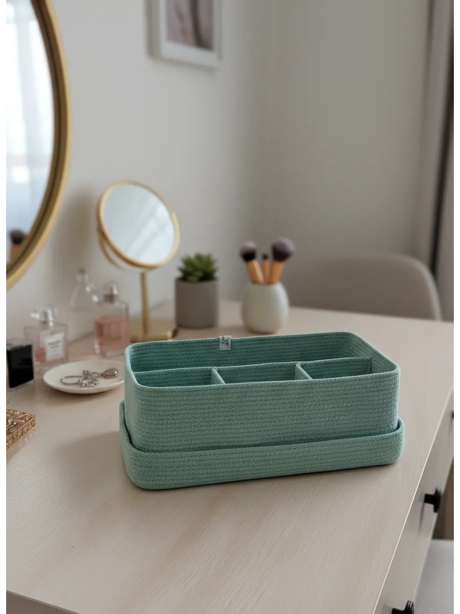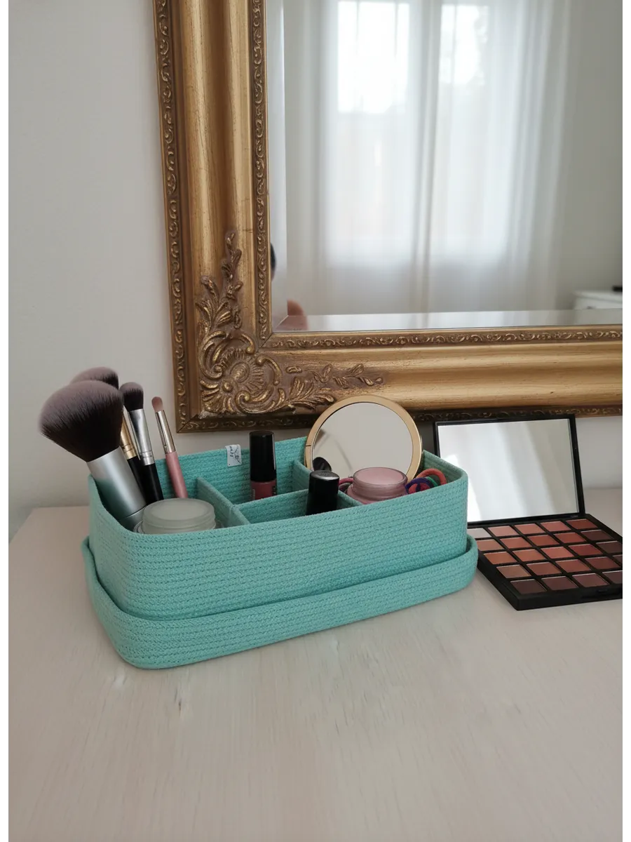 Идеальное решение для организации пространства - плетеная корзинка для хранения! Органайзер для хранения идеально подойдет для использования в ванной комнате, где вы сможете хранить косметику и другие мелочи в удобном и компактном органайзере.