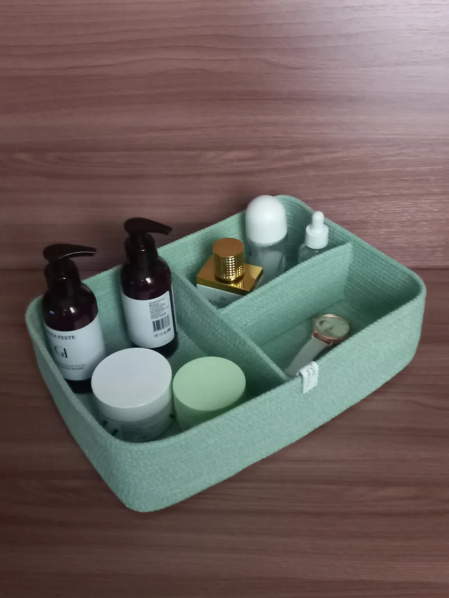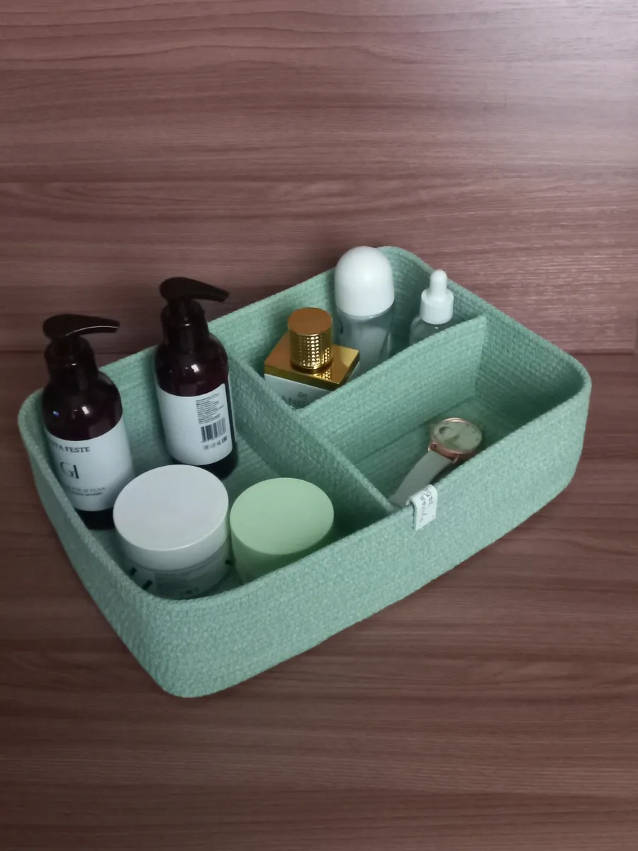 Идеальное решение для организации пространства - плетеная корзинка для хранения! Она станет любой корзинкой для мелочей. Органайзер для хранения идеально подойдет для использования в ванной комнате, где вы сможете хранить косметику и другие мелочи в удобном и компактном органайзере.