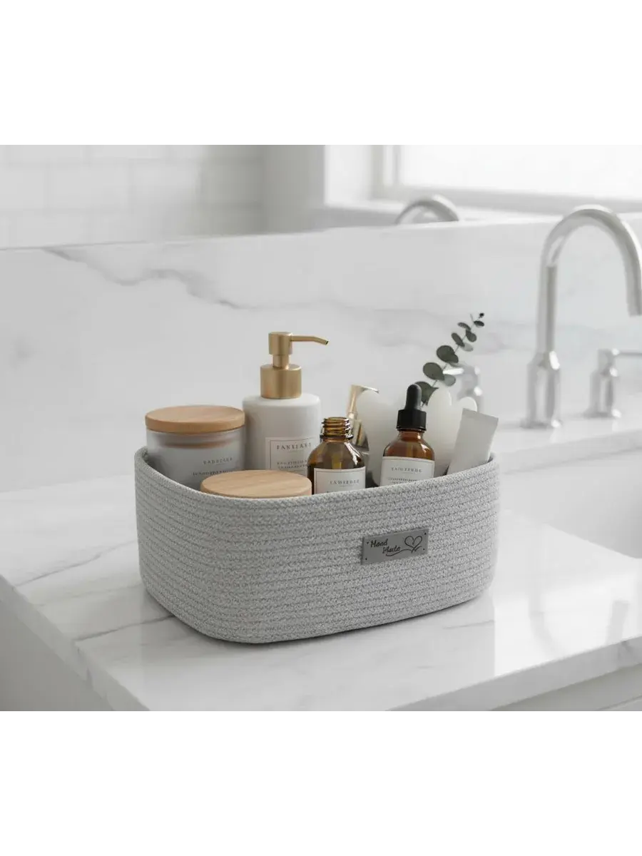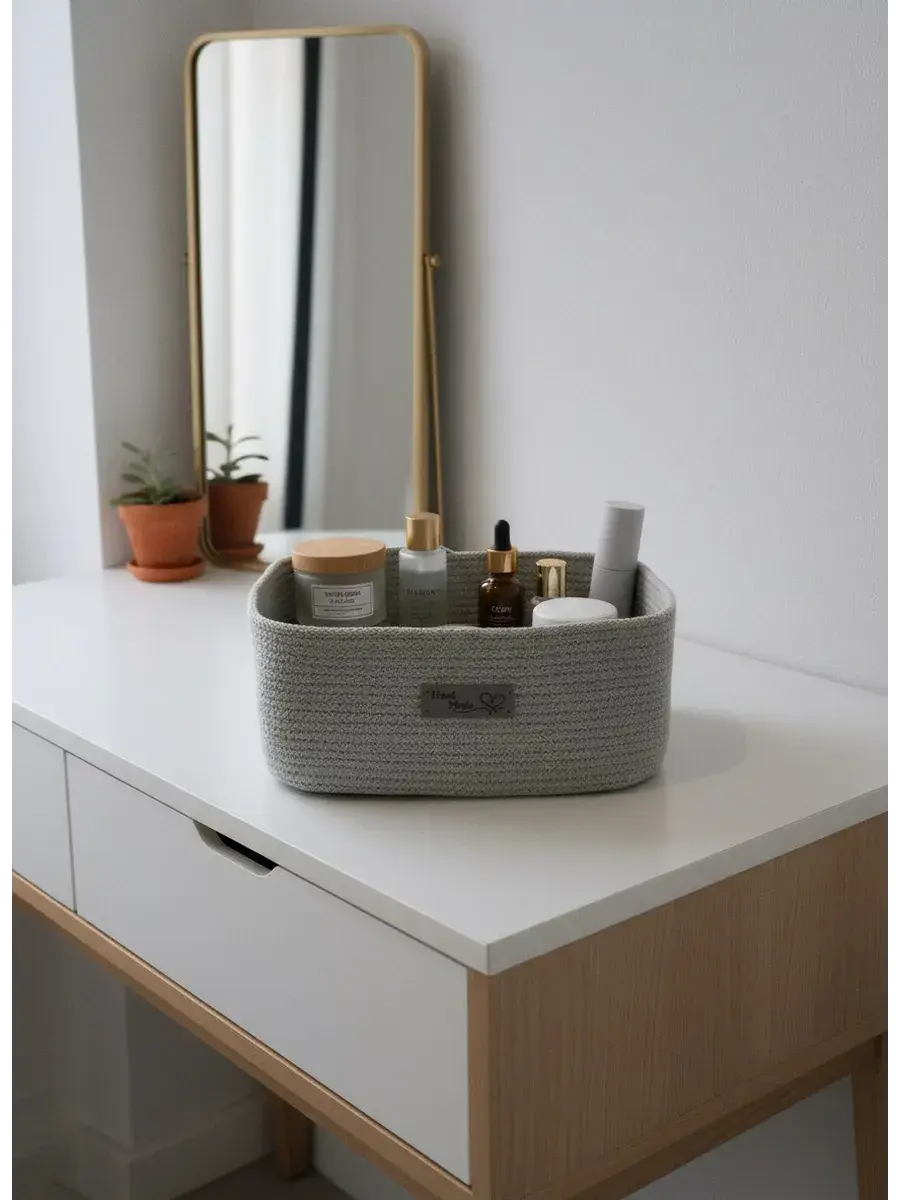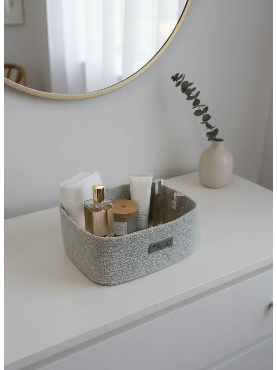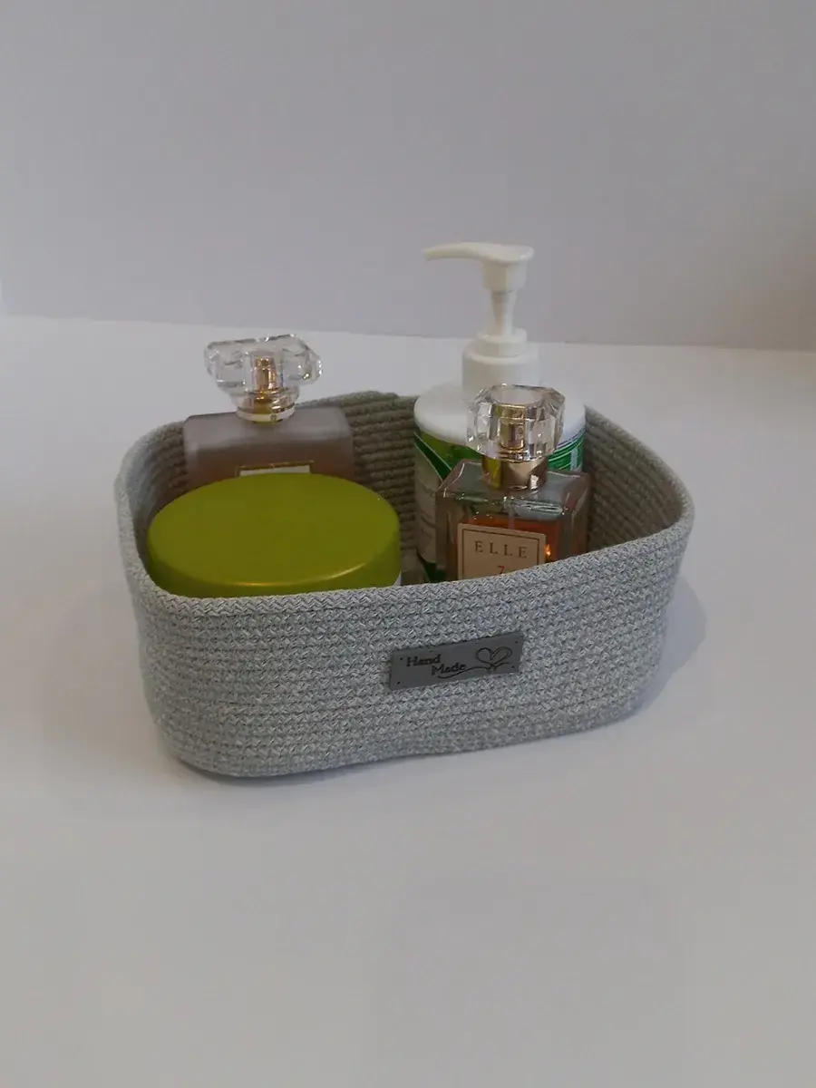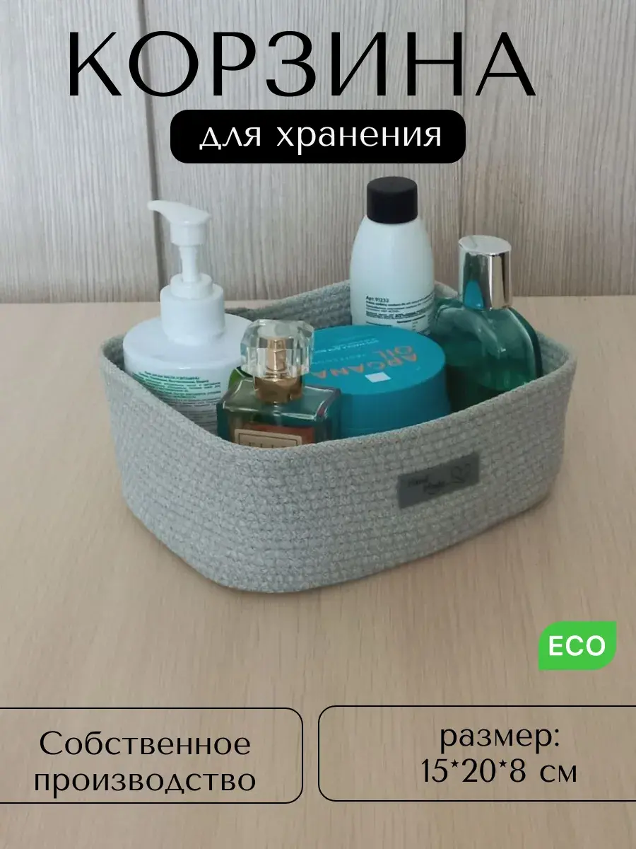 Плетеная интерьерная корзина дополнит систему хранения вашего дома.Корзинка для мелочей изготовлена из хлопкового шнура 5мм за счёт чего отлично держит форму.Корзиночки можно использовать для хранения швейных принадлежностей косметики . Корзины подойдут в качестве прекрасного подарка на любой праздник от свадьбы до дня рождения . Возможны расхождения размеров в пределах 1.5 см. Корзина плетеная