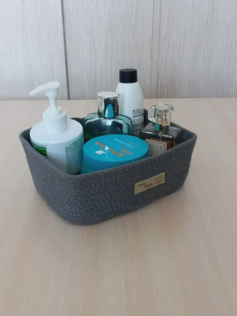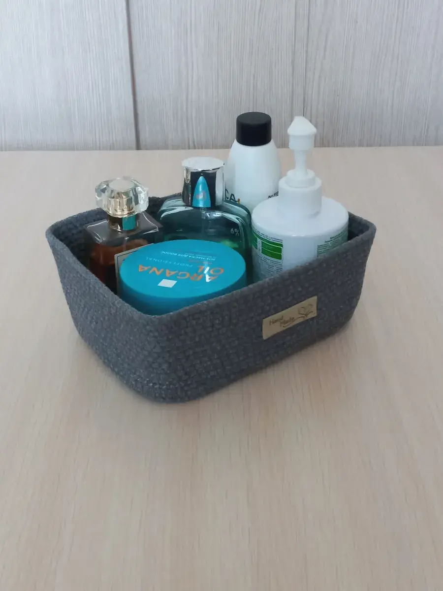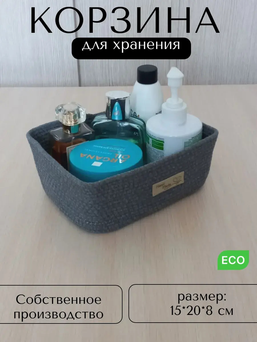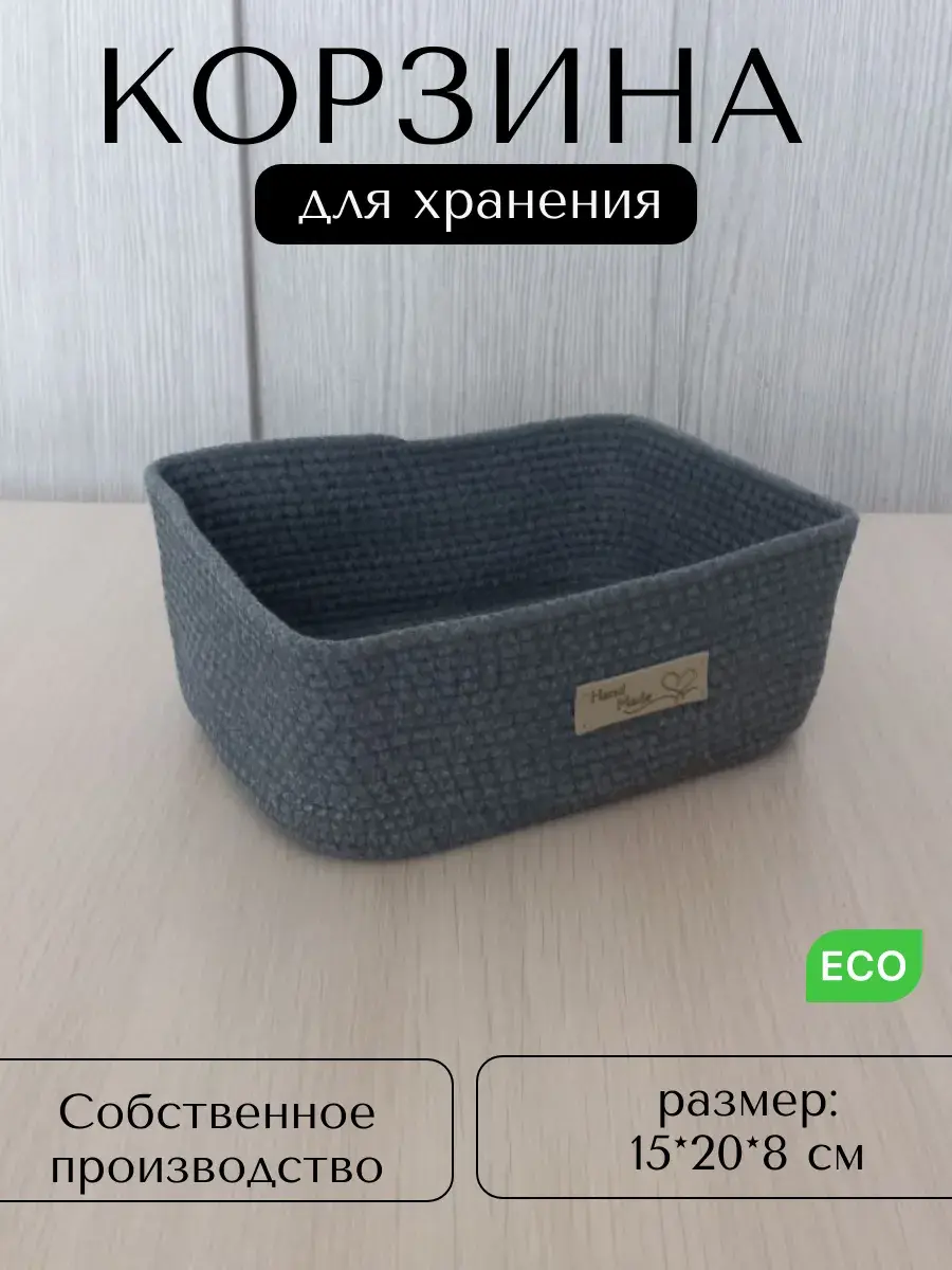 Плетеная интерьерная корзина дополнит систему хранения вашего дома.Корзинка для мелочей изготовлена из хлопкового шнура 5мм за счёт чего отлично держит форму.Корзиночки можно использовать для хранения швейных принадлежностей косметики, а также товаров для рукоделия/ канцелярии пряжа . Корзины подойдут в качестве прекрасного подарка на любой праздник от свадьбы до дня рождения . Возможны расхождения размеров в пределах 1.5 см. Корзина плетеная
