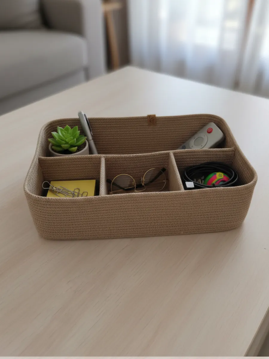 Эту корзинку для мелочей удобно поставить в ванную для хранения косметики, полотенец. В нее помесятся все необходимые мелочи, такие как ключи, монеты и другие предметы, которые обычно теряются.