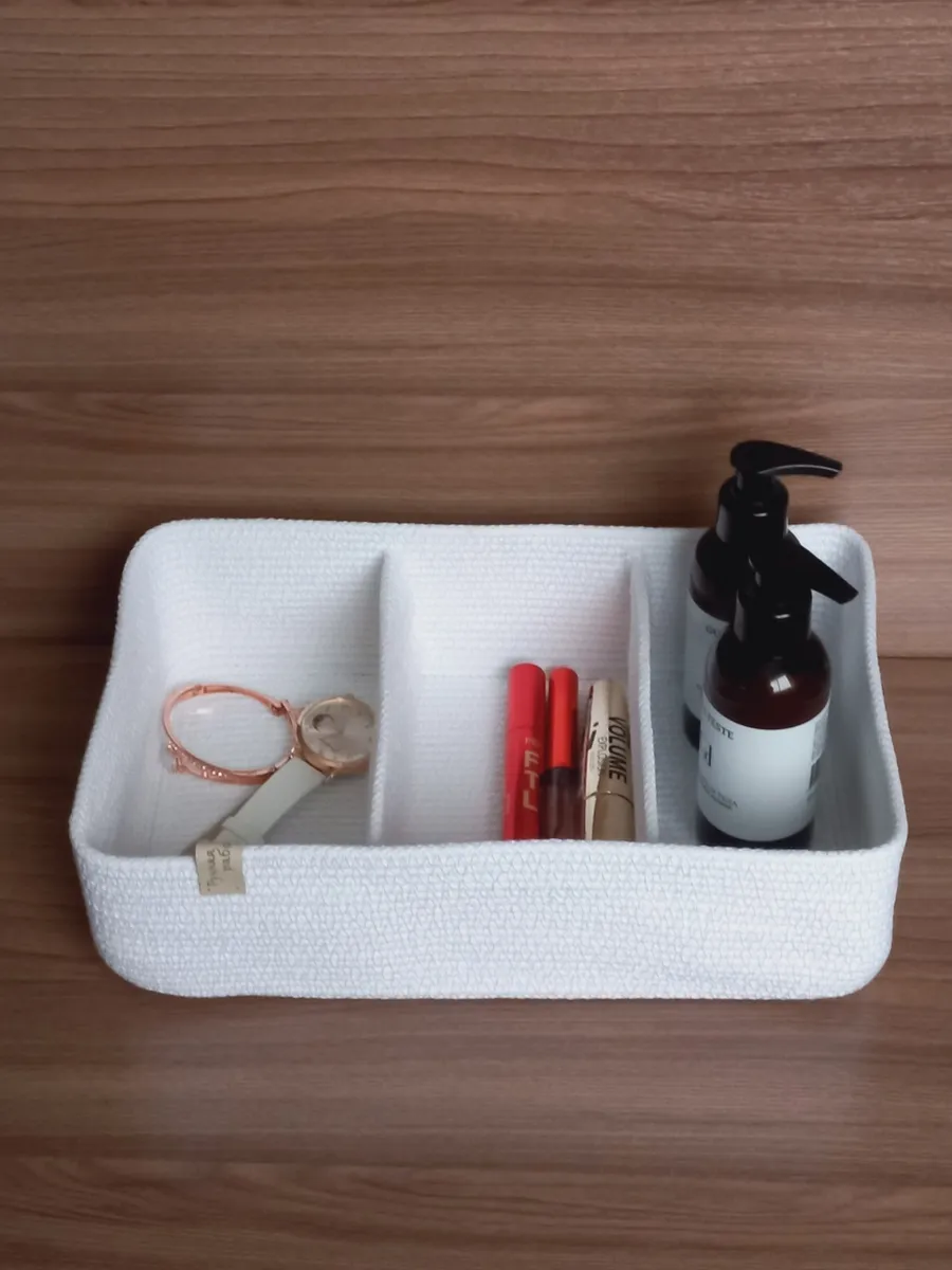Эту корзинку для мелочей удобно поставить в ванную для хранения косметики, полотенец. В нее помесятся все необходимые мелочи, такие как ключи, монеты и другие предметы, которые обычно теряются.