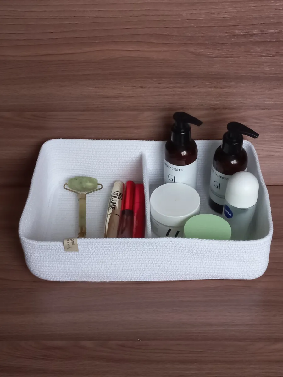 Идеальное решение для организации пространства - плетеная корзинка для хранения! Она станет любой корзинкой для мелочей. Органайзер для хранения идеально подойдет для использования в ванной комнате, где вы сможете хранить косметику и другие мелочи в удобном и компактном органайзере.