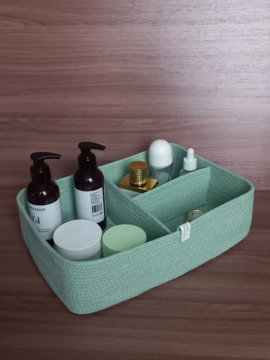 Идеальное решение для организации пространства - плетеная корзинка для хранения! Она станет любой корзинкой для мелочей. Органайзер для хранения идеально подойдет для использования в ванной комнате, где вы сможете хранить косметику и другие мелочи в удобном и компактном органайзере.