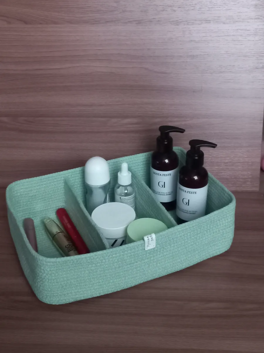 Идеальное решение для организации пространства - плетеная корзинка для хранения! Она станет любой корзинкой для мелочей. Органайзер для хранения идеально подойдет для использования в ванной комнате, где вы сможете хранить косметику и другие мелочи в удобном и компактном органайзере.