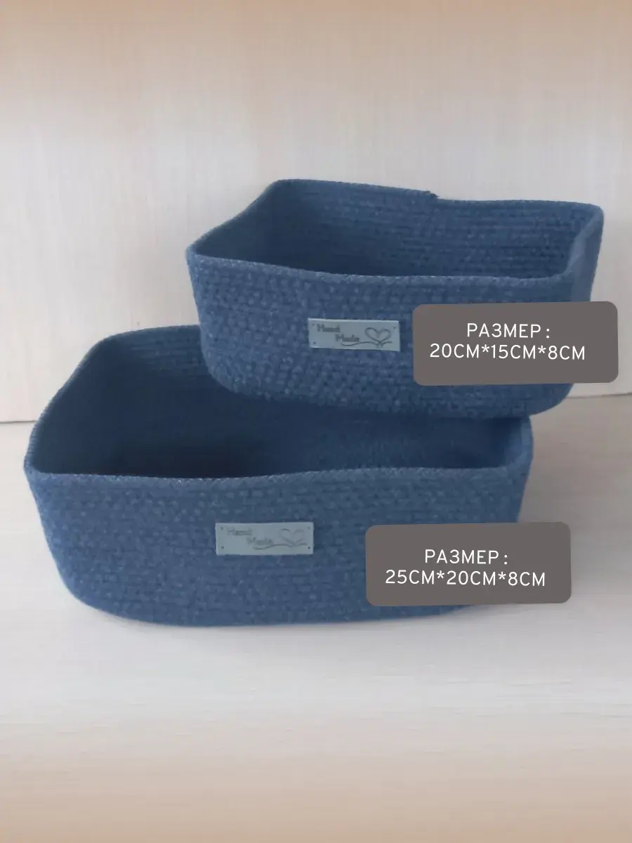 Набор корзинок- органайзеров из хлопкового шнура.Такой набор отлично подойдет для хранения любых средних и мелких предметов. Благодаря своему выразительному виду станет отличным дополнением к любому интерьеру. Корзинки не рвутся и не ломаются, им не страшны падения, пыль и вода. Хлопковый шнур-экологичный материал. Благодаря своим свойствам изделия шнура получаются прочными и износостойкими. Данный набор сшит на промышленном оборудовании, имеет очень красивую текстуру и придает пространству уютную и теплую атмосферу. Такой комплект может стать отличным подарком родным и близким на новоселье, а также может быть незаменим на даче и в кладовой. Складывайте в корзинку все, что помещается и даже самая маленькая и постоянно теряющаяся вещь больше никогда от вас не спрячется! Набор состоит из 2 корзин разного размера. Плетеная Джутовая Корзина Органайзер из хлопка для хранения дома на кухне на даче в ванной
