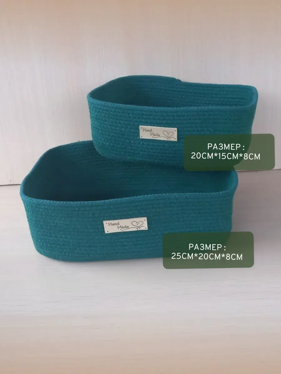 Набор корзинок- органайзеров из хлопкового шнура.Такой набор отлично подойдет для хранения любых средних и мелких предметов. Благодаря своему выразительному виду станет отличным дополнением к любому интерьеру. Корзинки не рвутся и не ломаются, им не страшны падения, пыль и вода. Хлопковый шнур-экологичный материал. Благодаря своим свойствам изделия шнура получаются прочными и износостойкими. Данный набор сшит на промышленном оборудовании, имеет очень красивую текстуру и придает пространству уютную и теплую атмосферу. Такой комплект может стать отличным подарком родным и близким на новоселье, а также может быть незаменим на даче и в кладовой. Складывайте в корзинку все, что помещается и даже самая маленькая и постоянно теряющаяся вещь больше никогда от вас не спрячется! Набор состоит из 2 корзин разного размера. Плетеная Джутовая Корзина Органайзер из хлопка для хранения дома на кухне на даче в ванной