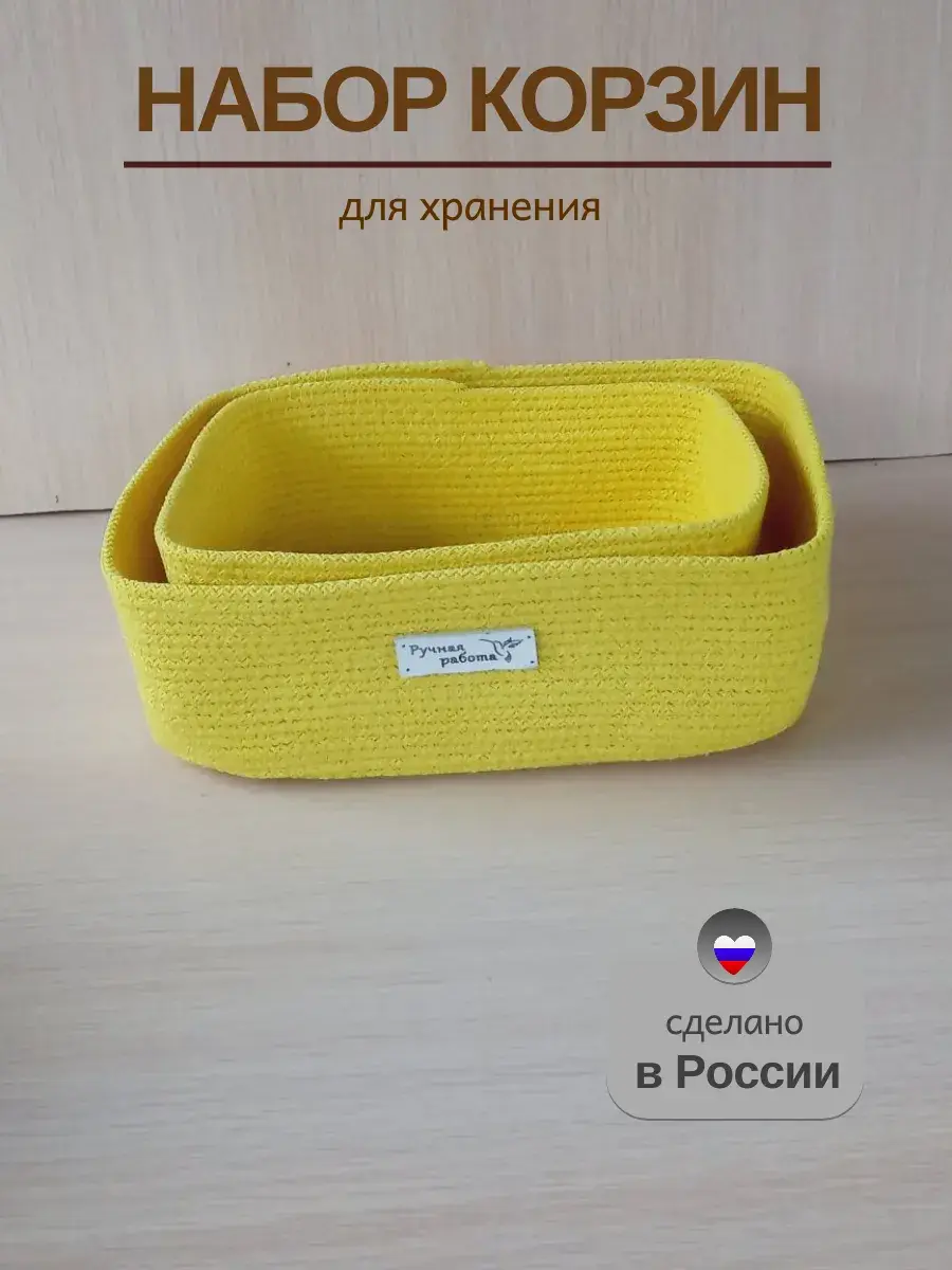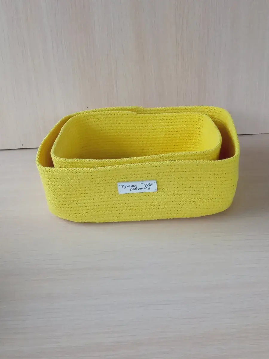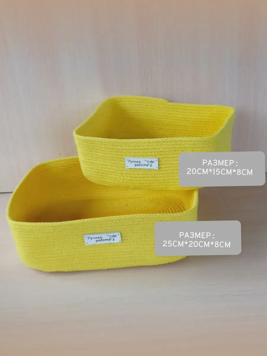 Набор корзинок- органайзеров из хлопкового шнура.Такой набор отлично подойдет для хранения любых средних и мелких предметов. Благодаря своему выразительному виду станет отличным дополнением к любому интерьеру. Корзинки не рвутся и не ломаются, им не страшны падения, пыль и вода. Хлопковый шнур-экологичный материал. Благодаря своим свойствам изделия шнура получаются прочными и износостойкими. Данный набор сшит на промышленном оборудовании, имеет очень красивую текстуру и придает пространству уютную и теплую атмосферу. Такой комплект может стать отличным подарком родным и близким на новоселье, а также может быть незаменим на даче и в кладовой. Складывайте в корзинку все, что помещается и даже самая маленькая и постоянно теряющаяся вещь больше никогда от вас не спрячется! Набор состоит из 2 корзин разного размера. Плетеная Джутовая Корзина Органайзер из хлопка для хранения дома на кухне на даче в ванной