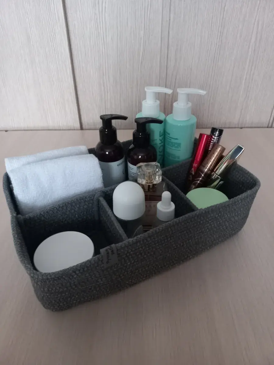 Идеальное решение для организации пространства - плетеная корзинка для хранения! Она станет любой корзинкой для мелочей. Органайзер для хранения идеально подойдет для использования в ванной комнате, где вы сможете хранить косметику и другие мелочи в удобном и компактном органайзере.