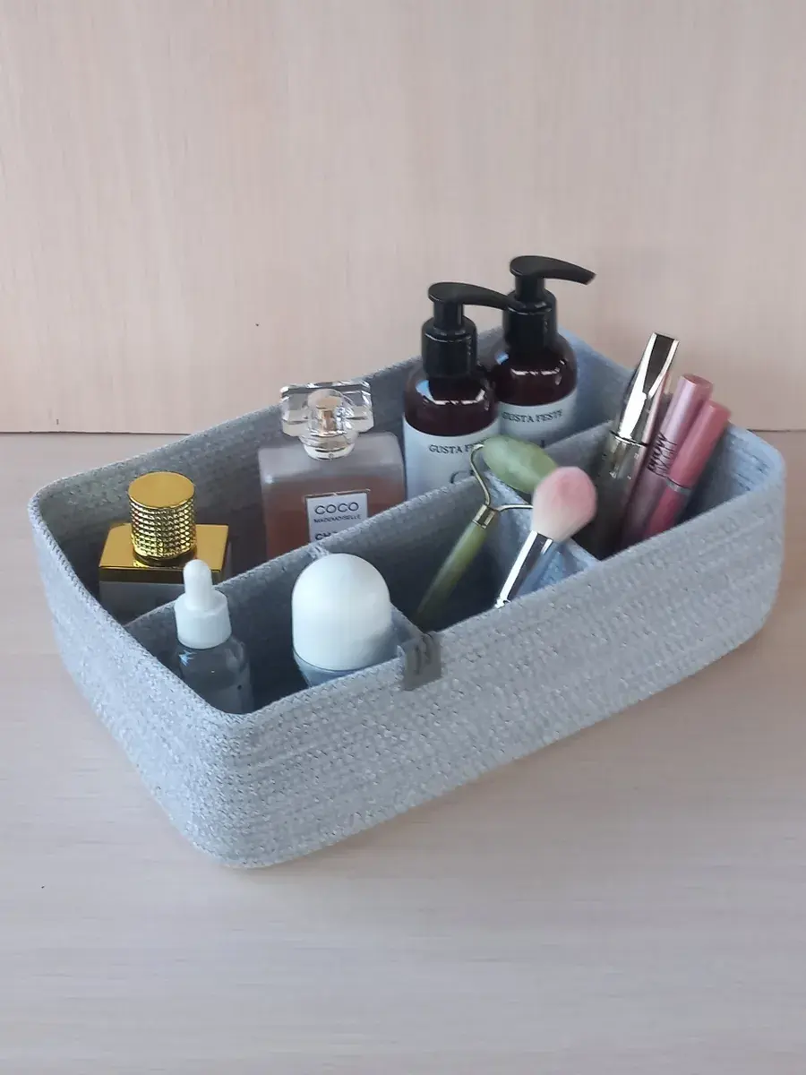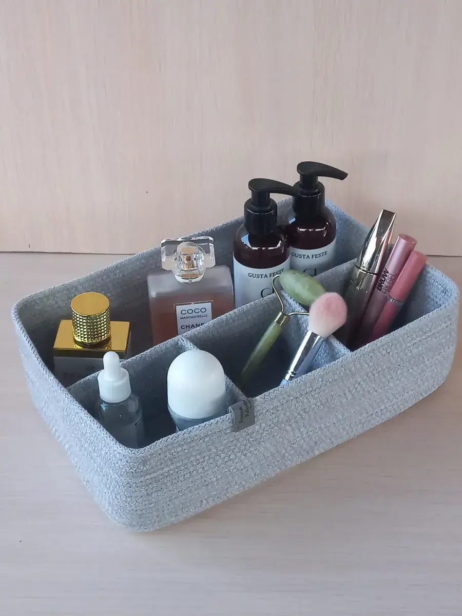 Идеальное решение для организации пространства - плетеная корзинка для хранения! Она станет любой корзинкой для мелочей. Органайзер для хранения идеально подойдет для использования в ванной комнате, где вы сможете хранить косметику и другие мелочи в удобном и компактном органайзере.
