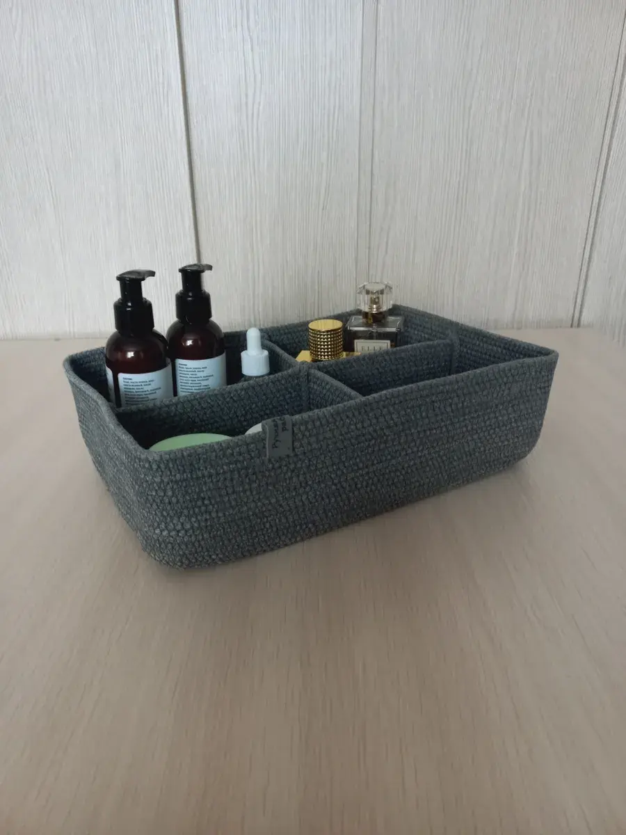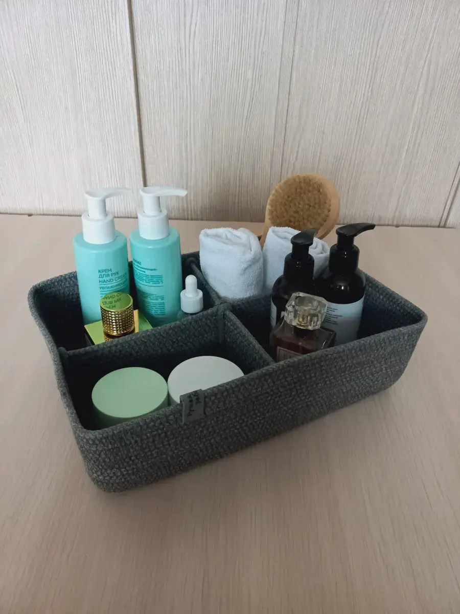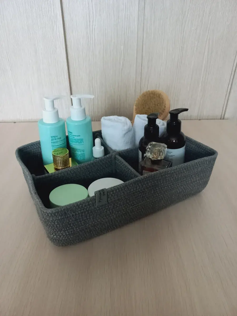 Идеальное решение для организации пространства - плетеная корзинка для хранения! Она станет любой корзинкой для мелочей. Органайзер для хранения идеально подойдет для использования в ванной комнате, где вы сможете хранить косметику и другие мелочи в удобном и компактном органайзере.