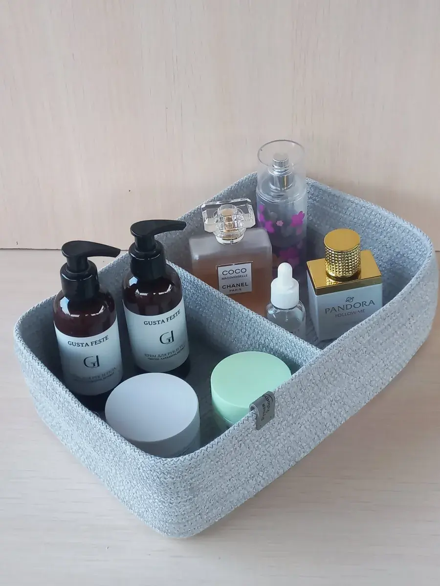 Идеальное решение для организации пространства - плетеная корзинка для хранения! Она станет любой корзинкой для мелочей. Органайзер для хранения идеально подойдет для использования в ванной комнате, где вы сможете хранить косметику и другие мелочи в удобном и компактном органайзере.