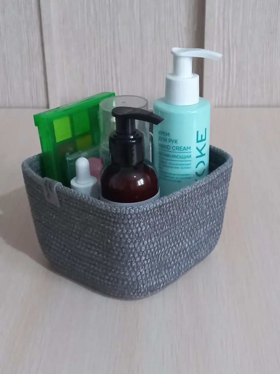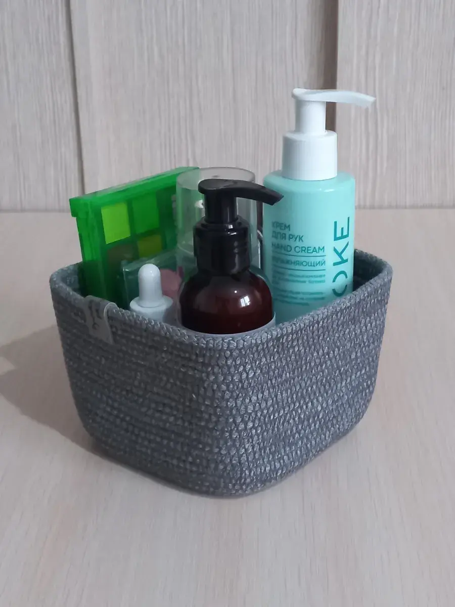 Идеальное решение для организации пространства - плетеная корзинка для хранения! Она станет любой корзинкой для мелочей. Органайзер для хранения идеально подойдет для использования в ванной комнате, где вы сможете хранить косметику и другие мелочи в удобном и компактном органайзере.