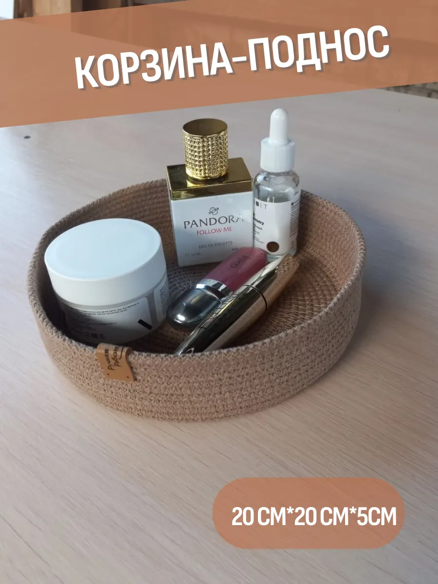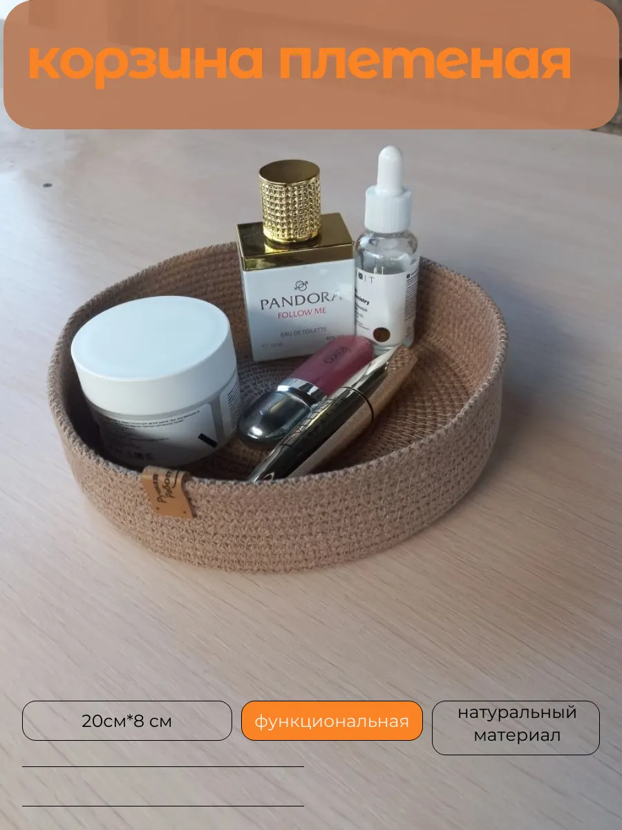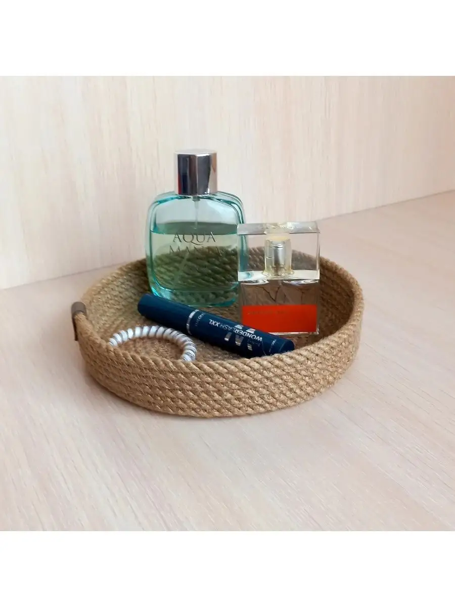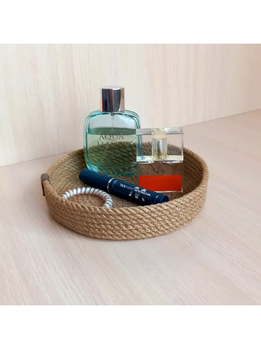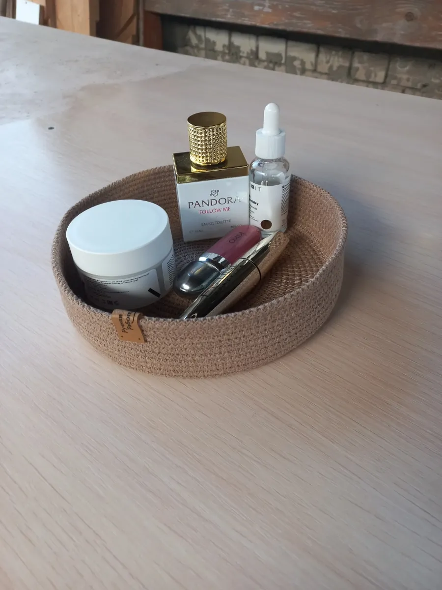 Плетеная интерьерная корзина дополнит систему хранения вашего дома.Корзинка для мелочей изготовлена из хлопкового шнура 5 мм за счёт чего отлично держит форму.Корзиночки можно использовать для хранения швейных принадлежностей косметики . Корзины подойдут в качестве прекрасного подарка на любой праздник от свадьбы до дня рождения . Возможны расхождения размеров в пределах 1.5 см.